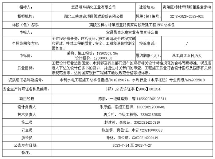 | 夷陵區(qū)樟村坪鎮(zhèn)殷董路袁家溝段改建工程EPC總承包中標(biāo)結(jié)果公告 |