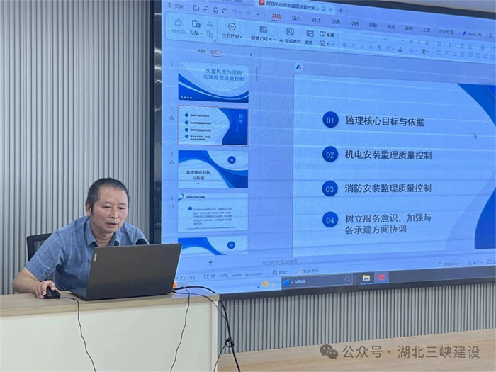 本次會(huì)議,管控部鮑宇飛詳細(xì)通報(bào)了各項(xiàng)目考核結(jié)果,通過(guò)數(shù)據(jù)對(duì)比和案例分析,既指出了當(dāng)前存在的典型問(wèn)題,也對(duì)項(xiàng)目部下步重點(diǎn)提出了管理建議。項(xiàng)目部總監(jiān)熊飛分享《監(jiān)理安全責(zé)任案例分析》,系統(tǒng)講解了新舊《建筑法》條款對(duì)比,監(jiān)理需落實(shí)“方案先行”“旁站監(jiān)督”“隱患閉壞”等規(guī)范要求。項(xiàng)目總監(jiān)張輝分享《高速作業(yè)升降工作平臺(tái)安全管控與實(shí)操要點(diǎn)》,安全風(fēng)險(xiǎn)如影隨形,隱患潛藏細(xì)微之中,時(shí)刻繃緊安全之弦,細(xì)心守護(hù)安全底線。項(xiàng)目機(jī)電安裝專家鄒建新圍繞《房建機(jī)電安裝監(jiān)理質(zhì)量控制》主題展開分享,內(nèi)容聚焦房建機(jī)電與消防安裝兩大板塊的監(jiān)理質(zhì)量控制要點(diǎn)。結(jié)合其多年現(xiàn)場(chǎng)監(jiān)理實(shí)踐經(jīng)驗(yàn),以保利·山海大觀、沃東應(yīng)急救援項(xiàng)目等實(shí)際案例為切入點(diǎn),通過(guò)闡述全流程監(jiān)督管理的具體措施與執(zhí)行標(biāo)準(zhǔn),監(jiān)理確保機(jī)電及消防系統(tǒng)最終達(dá)到設(shè)計(jì)標(biāo)準(zhǔn),實(shí)現(xiàn)安全可靠運(yùn)行。